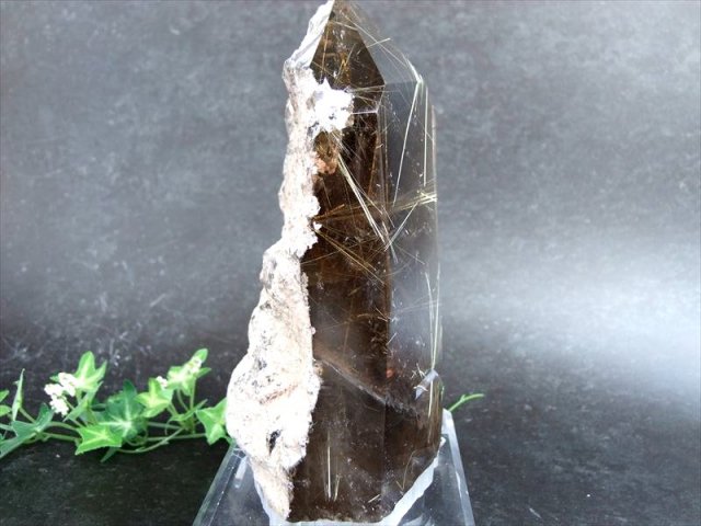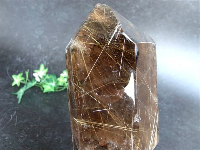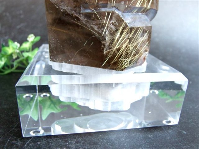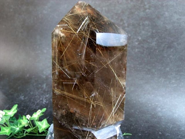 透明度抜群のスモーキークォーツに縦横無尽に入るゴールドタイチンルチルが美しく、原石部分を半面残したナチュラルな迫力ある原石を入荷致しました! 魔除けの意味合いを持つ透明度のあるスモーキー水晶の中に、切り裂く様に板状タイチン針が走っています! 裏面は磨かない原石そのままの荒々しさを残し、これぞ天然のルチル原石とパワーを感じますよ。 専用の木製台座が付属しているので、コレクション、お店のディスプレイ、インテリア、プレゼントにもおススメです! ルチルクォーツの云われは金運・仕事運が有名です。 金運・ビジネス運・勝負運の代表のルチルクォーツですので、この品は一攫千金の願掛け・御守りに最適です 女性の持つルチルとしてもおすすめですよ! ストーンキーワード 金運を高める 仕事の成功 危険を察知する 統率力、指導力 周囲との信頼関係 |