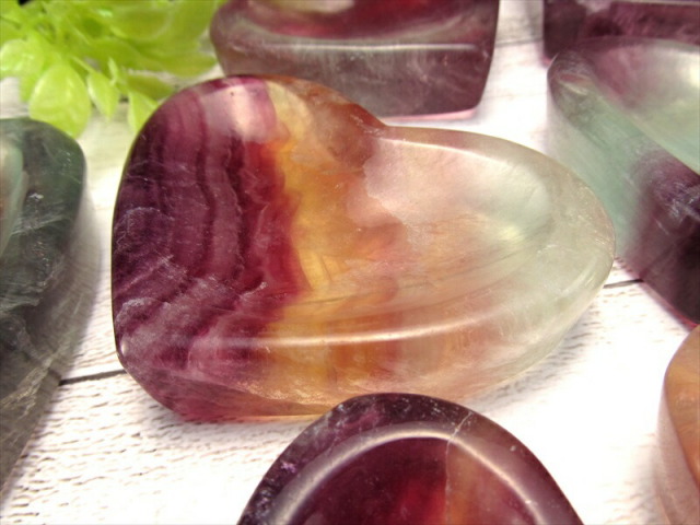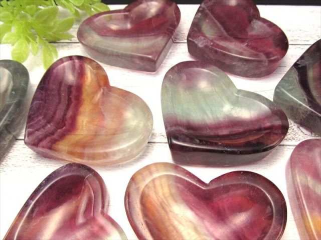 浄化用小皿に可愛らしいハートモチーフが入荷しました! 浅く凹んでいるので、さざれを敷いて浄化に使用したり、アクセサリーを保管するトレイとしてもお使いいただけます。 お部屋のアクセントとして、そのまま飾っても可愛いですよ♪ フローライトは『天才の石』とも称される事もあり、大人になるにつれて固定化されてきた思考パターンや抑圧された感情から自分自身を解き放つ為に働き、子供の頃の自由で無邪気な発想や思考力を高めてくれると云われています。 また、脳を活性化させて思考の幅を拡げ、受験のお守りになるなどの云われもあります。 滅多に入荷しない商品ですので、この機会に是非!! 【ストーンキーワード】 精神の成長 ストレスからの解放 協調性、癒し、心の安定 |