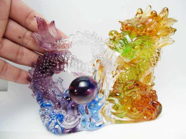 玉持ち龍神 レインボーカラーの龍置物 縁起物のドラゴンボールモチーフ置物が入荷しました! 黄色や青色などのポップな色にカラーリングされたガラス製の置物です。 たてがみや鱗などの細部もしっかりと表現され、どの角度から見ても丁寧で繊細な仕上がりです。 龍が天に昇ることから、運気上昇、立身出世、商売・事業・営業の発展成功をもたらすと云われています。 玄関やリビングのインテリアに最適です! ※瑠璃製は、硬質なガラスなので爪などでコンっと叩くとキーンと金属を叩いた様な音がします。 少数のみの限定入荷ですので、お早めにどうぞ!! 大吉開運!大きな夢の実現 龍神は大吉開運、大きな夢の実現、大盛況、大成功をもたらすと云われています。 |