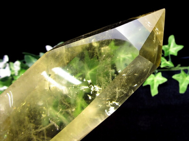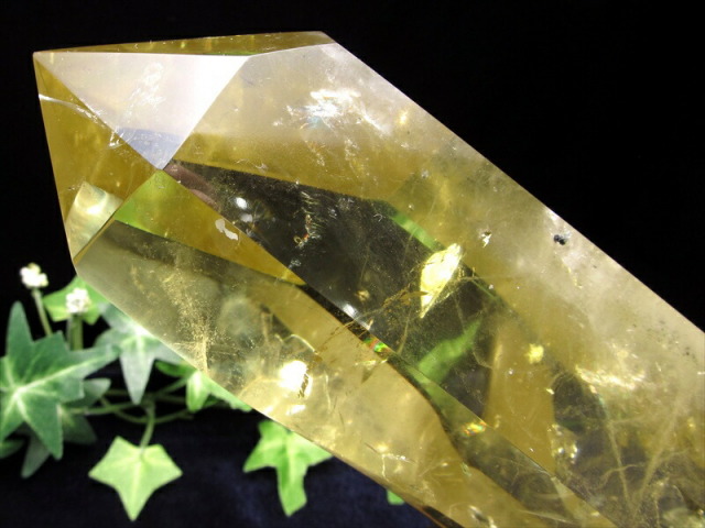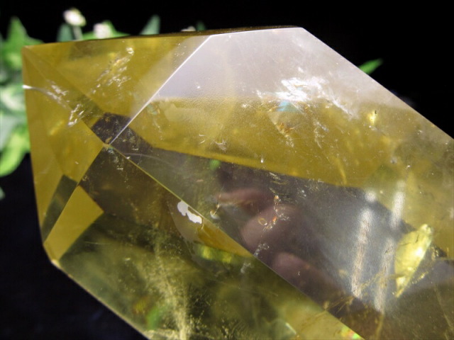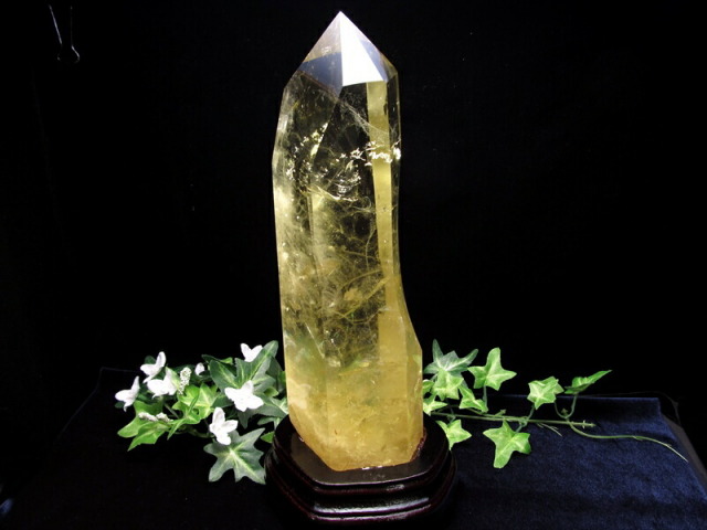 | 虹入り シトリン ポイント 置物 専用木製台付き |
