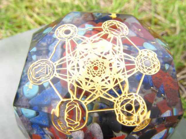 | 多面体オルゴナイト (ジャスパータンブル入り メタトロン MIXストーンさざれ) |