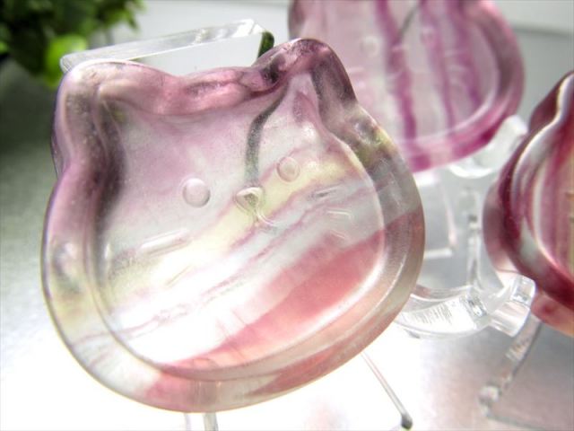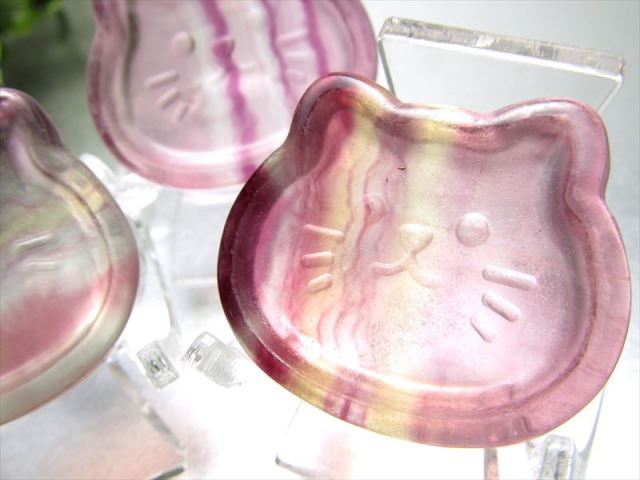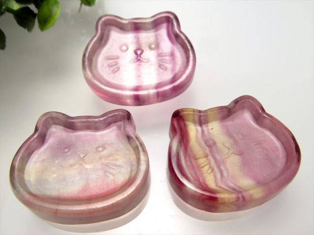 お待たせしました!! フローライトの猫のプレートが登場しました。 愛らしい猫モチーフは大変人気があります!! 表面も滑らかに磨かれ、つやつやです! お子様にも喜ばれるモチーフで、プレゼントにも是非 【フローライト】 フローライトは、『天才の石』とも称される事もあり、大人になるにつれて固定化されてきた思考パターンや抑圧された感情から自分自身を解き放つ為に働き、子供の頃の自由で無邪気な発想や思考力を高めてくれると云われています。 ストーンキーワード 受験のお守り。 集中力と思考力を高める。 無邪気な発想と思考。 |