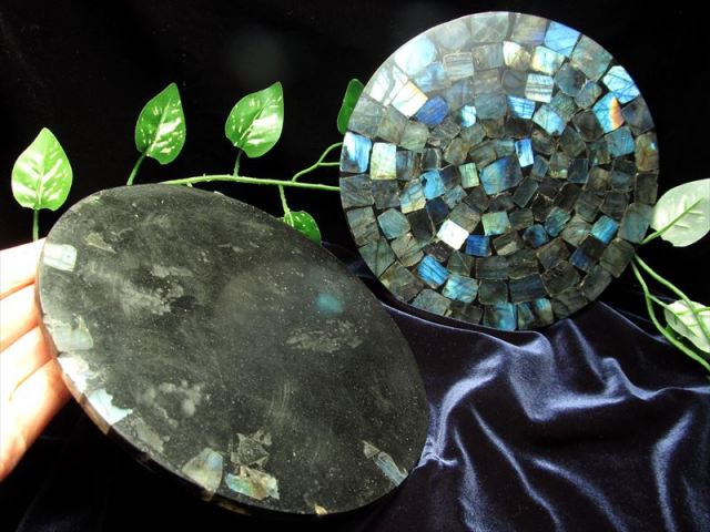 ラブラドライト 円形スライス 窓際に置いてインテリアとして飾ったり、お皿の下に敷いても使えます。 ラブラドライトの魅力は、見る角度によって力強く光る幻想的なブルーの輝きです。 このラブラドライトの光(ラブラドレッセンス)を、宇宙に浮かぶオーロラのような美しさと例える人もいます。 限定入荷ですので、お買い逃しなく!! 【ストーンキーワード】 内面的な自己開発へと導く。 新しい意識を開発する。 |