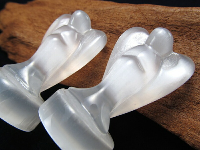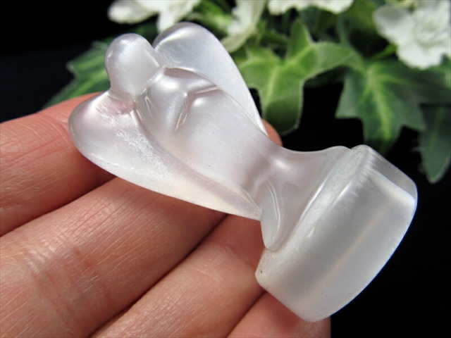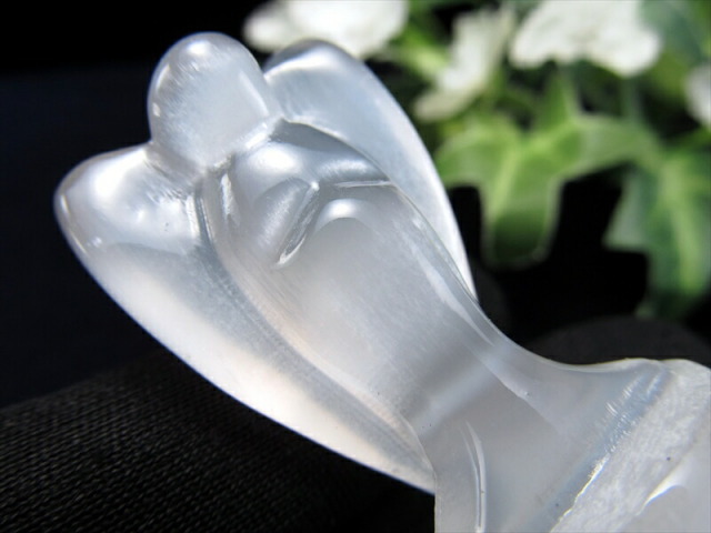 シルクのような繊維質をもつセレナイト天使置物を入荷しました! 癒しの石としてヒーラーの方などの間でよく用いられる石です! 石膏の一種で、その中で無色透明なものがセレナイトと呼ばれます。 そんなセレナイトを天使の形状に彫刻した置物です! セレナイトは古くから癒しの石として愛用され、持ち主の昂ぶった気や、頑固な感情を和らげてくれると云われています。 感情のコントロール、リラックス効果も期待されているとのこと。 さらに光に当たれば美しいキャッツアイが見えます! インテリアに取り入れやすいお手頃サイズです。 限定品ですので、皆様どうぞお買い逃しなく! 【セレナイトとは】 石膏の一種で、その中で無色透明なものがセレナイトと呼ばれます。 ギリシャ語のCerene(月)を意味する言葉が語源とされており、別名「聖母マリアのガラス」とも呼ばれ、かつては実際に窓ガラスなどに利用されることもあったそうです。 【天使とは】 天使をモチーフにした置物は気を浄化する作用があり、マイナスな気を消す効果があると云われています。 玄関に置くことで、悪い気を寄せつけない魔除け的な役割も果たしてくれるそうですよ |