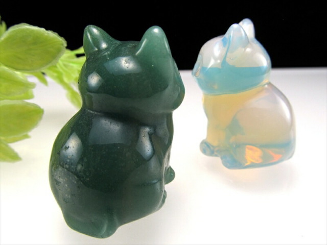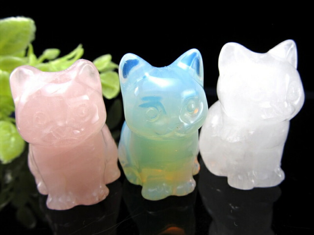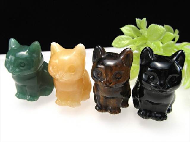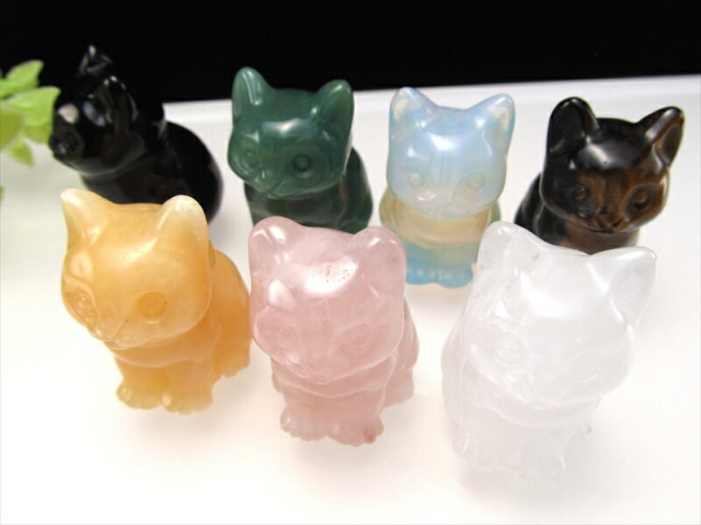 ミニサイズ お座りねこ 彫刻置物 かわいらしい手先サイズの、お座りねこ型置物が入荷しました!! コレクション、お店のディスプレイ、インテリア、プレゼントにもおススメです! 画像の7種類からお好きなものをお選びいただけます! ※2025年8月に新たに2種類のねこが仲間入りしました!! 純白の色合いが美しい漢白玉(アラバスター)と、独特の模様が人気のダルメシアンジャスパーです。 【アベンチュリン】 ・リラックス・癒し・疲労回復 【オブシディアン】 ・古来からの強力な守護石 【人工オパール】 ・才能開花・希望・想像力の向上 【ローズクォーツ】 ・美と愛の女神の石 【タイガーアイ】 ・商売繁盛の石 【水晶】 ・すべてを浄化し、クリアな状態にしてくれる石 【アラゴナイト】 ・ストレスによる心身の疲れを取り除く 【漢白玉(アラバスター)】 ・邪気を払う、金運・財運をアップさせる 【ダルメシアンジャスパー】 ・広い視野と洞察力、芸術性の開花 |