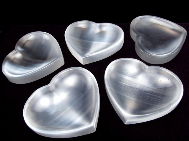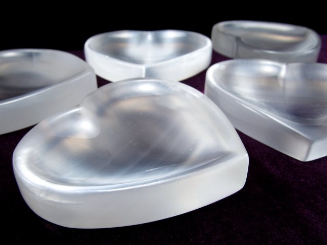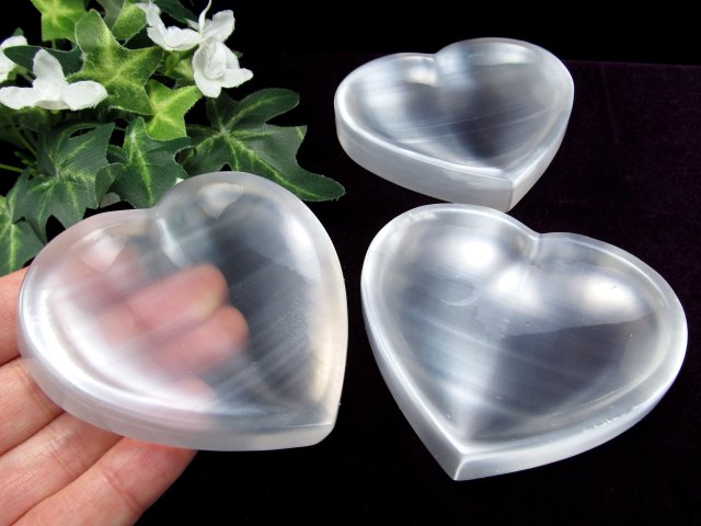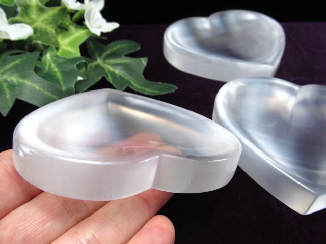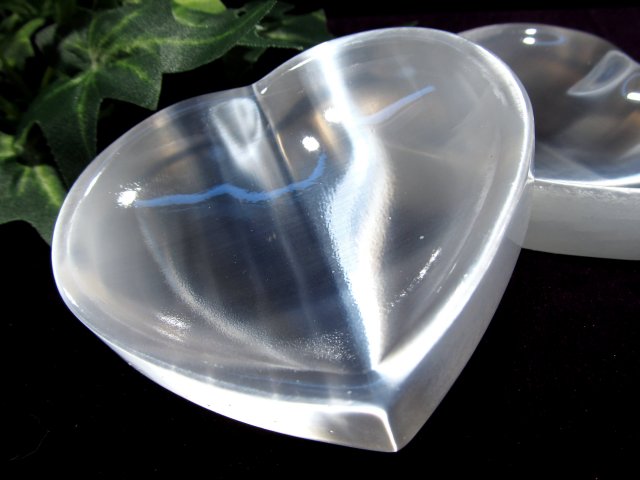 | ハート型 キャッツアイセレナイト プレート 皿 置物 |