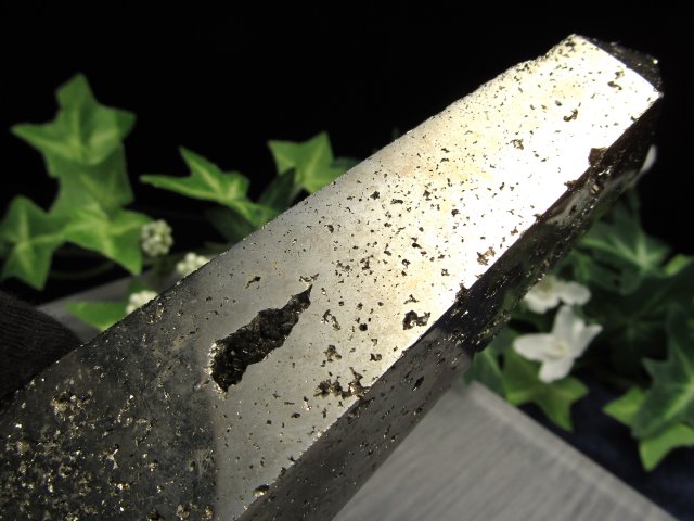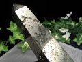 ギラギラと煌めくパイライトから削り出された六角ポイントです! 華やかなゴールドカラーで豪華絢爛な見た目! 硫黄と鉄で構成された硫化鉱物の一種で、金と見間違えてしまいそうになることから、「フールズゴールド(愚者の黄金)」ともいわれています。 この完璧とも言える原石の結晶状態を楽しむ石として人気が高いパイライトですが、18世紀頃には「マルカジット」と言いダイヤモンドの代用ジュエリーとして非常に人気がありました。 コレクションやお店のディスプレイ、もちろん浄化にもオススメです! 激安販売ですのでこの機会に是非! 【意味合い・云われ・伝承等】 パイライトは強力な邪気払いの力を持つとされ、持ち主の周りにバリアを張り、ネガティブなエネルギーから保護してくれると云われています。 また、その色合いから仕事運・金運アップの云われもあるオススメのパワーストーンです。 |