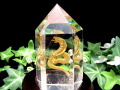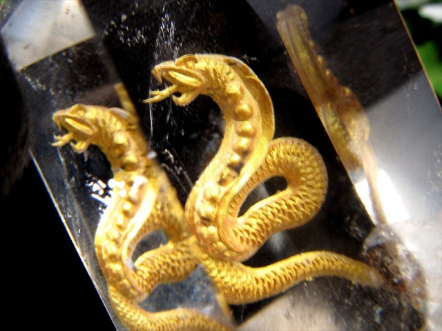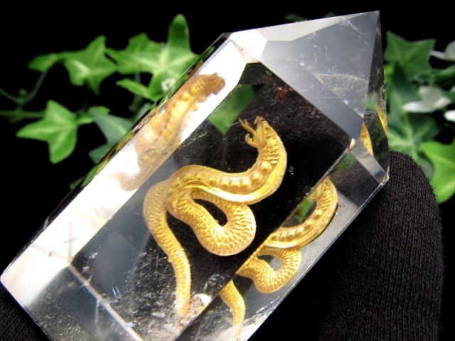 | 金蛇彫り 天然水晶 六角柱置物 |