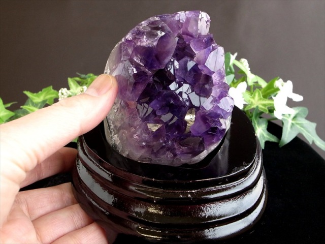 ウルグアイ産 アメジストクラスター スタンドタイプ 5Aグレードのウルグアイ産アメジストクラスターが入荷しました!! こちらは自立できるスタンドタイプのクラスターです。 アメジスト【紫水晶】は真実の愛を教えてくれるといった石言葉を持ち、また2月の誕生石としても有名で非常に人気の高い水晶です。 ブラジル産と比べ、ウルグアイ産アメジストは深みと高級感のある濃い紫色で産出したり、色が薄い物でも透明度が高く宝石質の美しい品が多いのが魅力です。 つや感・透明感・結晶ともにバランス抜群で、これぞアメジストと感じられる極上品です。 久しぶりにトップグレードと呼べる濃い紫結晶ですので、是非! 水晶クラスターなどと比べて流通量が少なく、なかなか入荷致しませんのでお見逃し無く。 【ストーンキーワード】 ・癒しと安らぎ ・精神の安定 ・真実の愛を守り抜く |