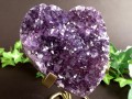 毎回品切れ必至の大人気ハート型アメジストクラスターが入荷いたしました。 良質で濃いアメジストが採れるウルグアイ産のハート型アメジストです。 結晶の濃さ、透明度、結晶の大きさの揃い、どれを取っても完ぺきに近い逸品ですよ。 【アメジスト】 2月の誕生石としても有名で、アクセサリーや宝石としても人気の高い定番中の定番のアメジスト。 『愛の守護石』『真実の愛を守りぬく石』とも云われております。 |