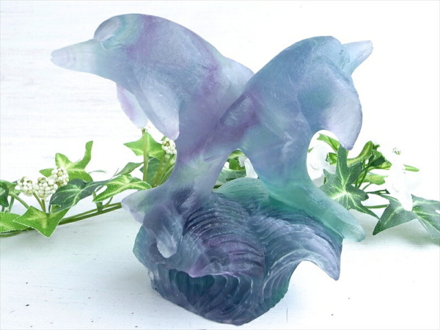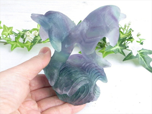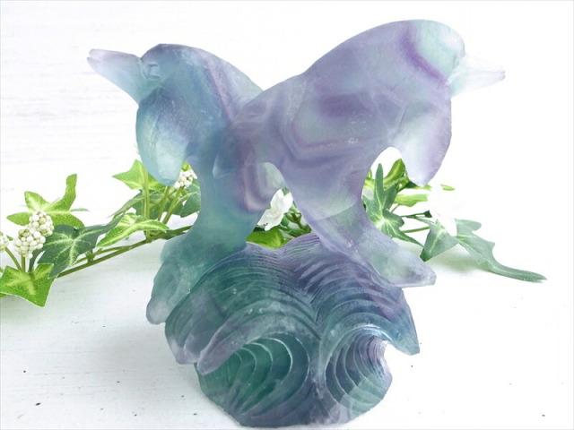 | ツインドルフィン レインボーフローライト 彫刻置物 |