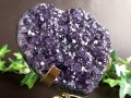 毎回品切れ必至の大人気ハート型アメジストクラスターが入荷いたしました。 良質で濃いアメジストが採れるウルグアイ産のハート型アメジストです。 結晶の濃さ、透明度、結晶の大きさの揃い、どれを取っても完ぺきに近い逸品ですよ。 【アメジスト】 2月の誕生石としても有名で、アクセサリーや宝石としても人気の高い定番中の定番のアメジスト。 『愛の守護石』『真実の愛を守りぬく石』とも云われております。 |