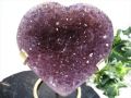 毎回品切れ必至の大人気ハート型アメジストクラスターが入荷いたしました。 こちらの商品には商品画像に写っております、ゴールドの台座が付属されます。 ウルグアイ産のアメジストは、ブラジル産と比べて濃い紫色で美しく、薄い色合いでも高い透明度を持つ宝石のような輝きが特徴です。 淵の方はポリッシュ仕上げが施されており、付属されるゴールドの台座に乗せることですぐお部屋に飾ることができます。 商品画像のように、台座から降ろして結晶の上にブレスレットやアクセサリーを置くのもオススメです! 【意味合い・云われ・伝承等】 アメジストは「愛の守護石」と呼ばれますが、そこにハートの形が加わることでより「パートナーとの絆」や「恋愛成就」へのエネルギーが特化されます。 過去の失恋や傷ついた記憶を浄化し、前向きな気持ちを取り戻す「ヒーリング効果」が非常に高いのが特徴です。 数に限りがございますので、お早めに! |