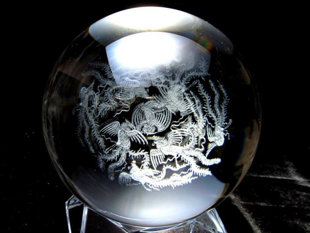 【ガラス製の置物・雑貨・ディスプレイ入荷です 】 9羽の鳳凰 クリスタルガラス製 丸玉 造形も綺麗で置物としてもおススメのガラス雑貨です! こちらはクリスタルガラス製の丸玉内にレーザー彫刻にて細部まで彫りこまれた9羽の鳳凰の丸玉置物です。 即位礼正殿の儀で天皇陛下が即位を宣明された高御座に、天蓋の頂上と外周に計9羽の鳳凰が輝いていたなど、天皇の装飾品のモチーフとして鳳凰は古くから用いられてきました。 通常のガラスとは異なり、透明度と輝きに優れたクリスタルガラスを用いているため、幻想的な空間を演出してくれます ※台座は、入荷ロットにより木製の回転台座と角型ガラス台座、プラスチック台座等、種類が変わってしまう事があります。選ぶ事が出来ませんので気になる方はお問い合わせください。 ※ガラス製品ですので取り扱いにはご注意ください。 ※サイズは目安です。 少々誤差がでる場合があります。 |