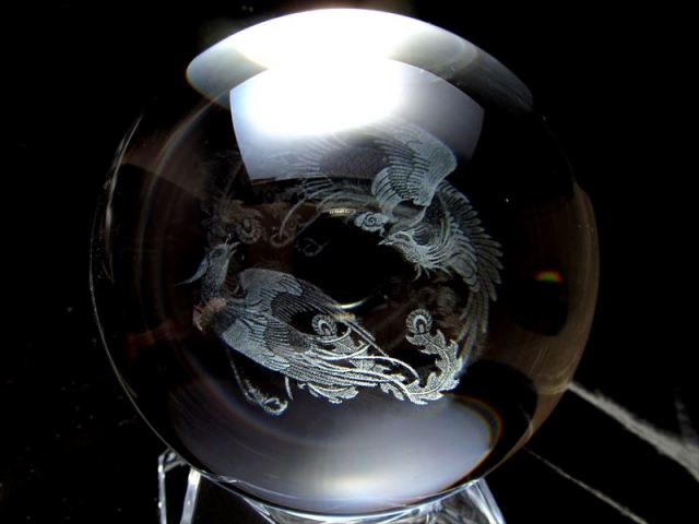 【ガラス製の置物・雑貨・ディスプレイ入荷です 】 2羽の鳳凰 クリスタルガラス製 丸玉 造形も綺麗で置物としてもおススメのガラス雑貨です! こちらはクリスタルガラス製の丸玉内にレーザー彫刻にて細部まで彫りこまれた2羽の鳳凰の丸玉置物です。 鳳凰(ほうおう)は、平安・調和をもたらすといわれており、女性の場合、良縁に巡り合わすとされます。 また、鳳は雄、凰は雌を指しており、2羽が揃う事で夫婦和合を表すと云われております。 通常のガラスとは異なり、透明度と輝きに優れたクリスタルガラスを用いているため、幻想的な空間を演出してくれます ※台座は、入荷ロットにより木製の回転台座と角型ガラス台座、プラスチック台座等、種類が変わってしまう事があります。選ぶ事が出来ませんので気になる方はお問い合わせください。 ※ガラス製品ですので取り扱いにはご注意ください。 ※サイズは目安です。 少々誤差がでる場合があります。 |