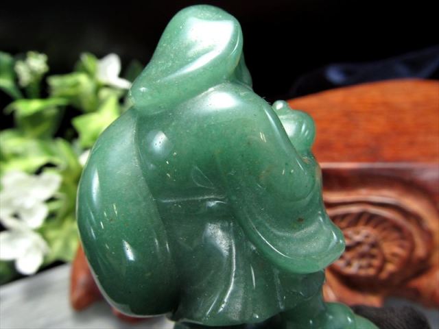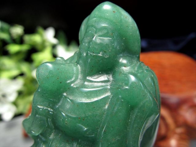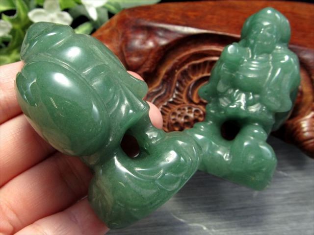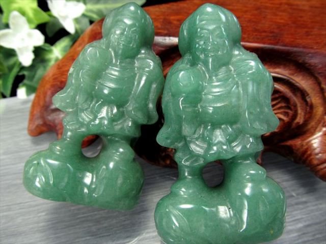 癒しのグリーンカラーの大黒天、アベンチュリン置物を入荷いたしました。 まるごと天然石を使用して作られており、手のひらに乗るサイズのインテリアです。 アベンチュリンは癒しの効果があると云われており、森の結晶と例えられるほど柔らかい印象の定番天然石です。 【アベンチュリン】 「リラックスの石」と呼ばれる、やわらかいエネルギーを持ちイライラや不安を抑え、ストレスを癒す効果が高いとされています。 また自律神経のバランスを整えてイラつきを抑え、冷静な判断力や集中力、記憶力を高める効果があるとも言われています。 【大黒天】 大黒天は食を司るとされ、五穀豊穣のご利益が広く知られ、満面の笑みで俵に乗る姿で信仰を集めています。 インド神話に登場する創造と破壊を司る「シヴァ神」の化身と云われていて 頭巾をかぶり、財宝を表す大きな袋と富が湧き出る小槌を持って、米俵に乗っている姿が一般的です。 五穀豊穣・商売繁盛・開運などのご利益があるとされています。 数量限定ですのでお早めに! |