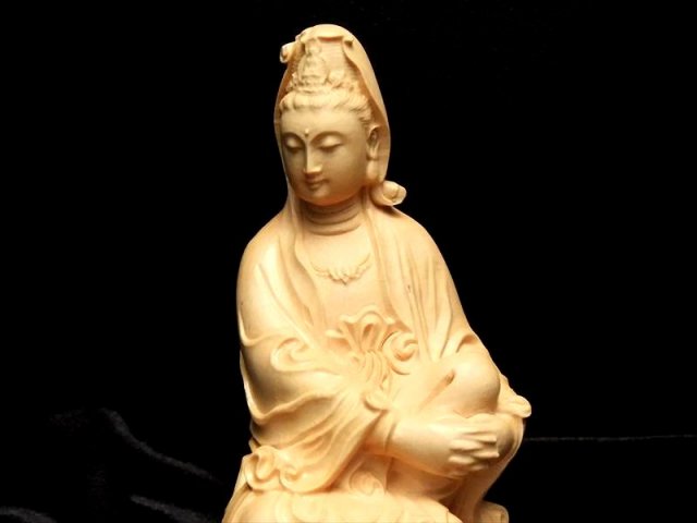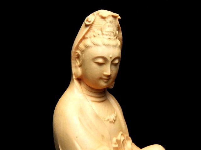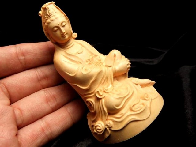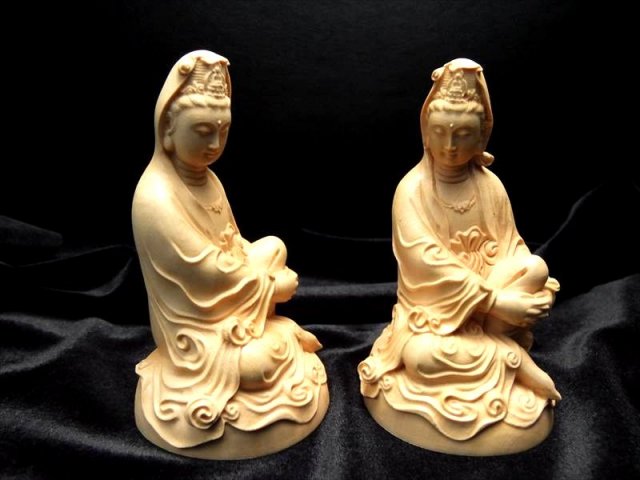 木彫り白衣観音(びゃくえかんのん、びゃくいかんのん)像置物 人気の置物シリーズにオールウッドの観音様置物が登場です! 水晶やローズクォーツなどの彫刻置物と違い、オールウッドですので木本来の木目が見え、暖かみのある雰囲気を醸し出しています 観音菩薩の起源は中国への仏教伝来よりもはるかに古く、日本では深く信仰の対象とされていることは言うまでもありません。 こちらは白衣観音(びゃくえかんのん、びゃくいかんのん)という観音様で、古くからインドで崇拝されていたとされ、仏教に取り入れられてからは阿弥陀如来の明妃となり、観音菩薩の母とも仰がれて、その後、観音菩薩の変化身の一尊として信仰されるようになったとされています。 【仏像の姿勢】 座っている像は人々を救う方法を考えておられる姿とされています。 浄化用さざれと一緒に置いたり、もちろん単体でインテリアにも!お守りとしても良しです。 |