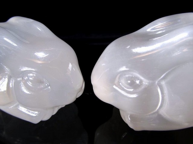 シルクのような繊維質をもつセレナイト うさぎ置物を入荷しました。 癒しの石としてヒーラーの方などの間でよく用いられる石です。 石膏の一種で、その中で無色透明なものがセレナイトと呼ばれます。 そんなセレナイトをウサギの形状に彫刻した置物です。 セレナイトは古くから癒しの石として愛用され、持ち主の昂ぶった気や、頑固な感情を和らげてくれると云われています。 感情のコントロール、リラックス効果も期待されているとのこと。 さらに光に当たれば美しいキャッツアイが見えます。 インテリアに取り入れやすいお手頃サイズです。 限定品ですので、皆様どうぞお買い逃しなく。 【セレナイトとは】 石膏の一種で、その中で無色透明なものがセレナイトと呼ばれます。 ギリシャ語のCerene(月)を意味する言葉が語源とされており、別名「聖母マリアのガラス」とも呼ばれ、かつては実際に窓ガラスなどに利用されることもあったそうです。 【商売繁盛】 うさぎは長い耳が大変特徴的です。うさぎの耳が長くなったのは、遠くから迫っている天敵の物音を聞いて素早く逃げるためだと言われています。 商売において、最も大切なのは情報収集力です。あらゆる情報を収集することが、商売での成功につながります。 長い耳を持ったうさぎは情報収集力もあり、危険を察知する能力も高いという特徴があります。これらの能力にあやかるという意味から、商売繁盛としての効果があるとされています。 【子孫繁栄】 うさぎは繁殖力が大変強く、子だくさんで多い時には一度に10匹以上も子供を生むことがあります。 これらの理由からうさぎは子孫繁栄をもたらしてくれると考えられています。 うさぎの繁殖力の高さが良い効果をもたらして、子供が生まれやすくなると云われています。 ※硬度が低く、水に弱いため、お取り扱いにはご注意ください。 ※サイズは目安です。 細かな誤差が出る場合があります。 ※天然石ですのでカケや凹み、歪な部分やクラックなどがある場合があります。 ※天然石商品には透明度や色みに個体差があります。 また出来る限り自然な色みになるよう撮影を心がけておりますが、お使いのディスプレイ環境によって表示される色みに差が出る場合があります。 ご了承ください。 |
