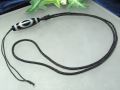 天珠・天然石が装着可能! 天珠用のデザイン紐の激安商品が入荷しました! 組み紐で仕上げられており、先端部分は2本の細い紐(ひも)になっています。 そこに天珠や、天然石のビーズを通すことでネックレスとして使用することができます! 写真では天珠をひとつだけ通しておりますが、ビーズも合せて複数の石を通しても面白いですね。 ※通す穴は直径が1.5mm程度開いているとスムーズに通すことが出来ます。 石の付け替えも簡単ですので、手軽に天珠や天然石を入れ替えて楽しめる新しい商品です! デザインされた組みひもでこの価格!! 激安おすすめ商品です |