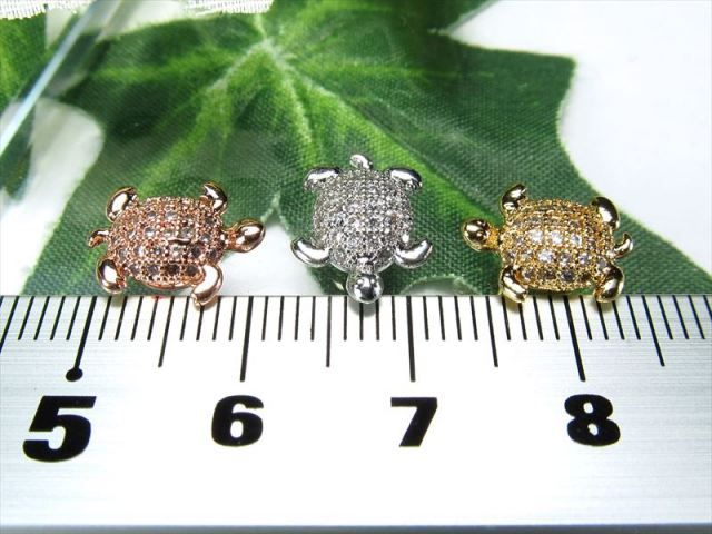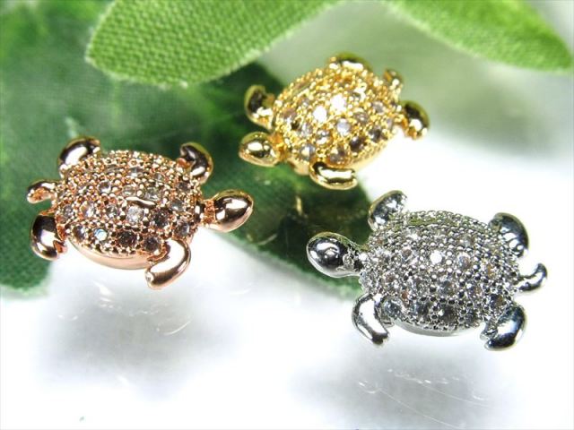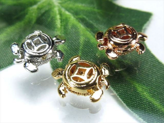 タートル(ウミガメ)デザイン アクセサリーパーツ アクセサリーパーツに新しくウミガメデザインのパーツが入荷しました! 約1ミリまでのゴムが通せる穴で、甲羅部分の華やかなデザインがとても可愛らしいです! ゴールドとシルバー、ピンクゴールドの3色からお選びいただけます。 激安価格ですのでオススメです!ハンドメイドにぜひ!! |