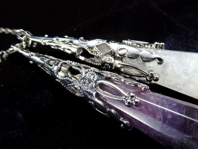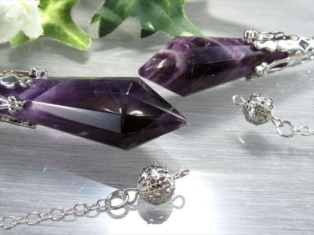 お洒落なデザインのペンデュラムが入荷しました!4種類からお好きな天然石をお選びいただけます。 ペンデュラム上部にシルバー装飾が施されたラグジュアリーなペンデュラムです! ペンデュラムとしてはもちろん、加工してペンダントトップやパーツとして使用するのもオススメです 【天然水晶】 水晶(クォーツ)は世界中の人に愛され、伝統的につかわれてきた、パワーストーンを語る上で欠かせない石です。その抜群の浄化作用から「万能の石」と呼ばれ、他のパワーストーンを浄化する際に利用されています。 【アメジスト】 恋愛運の代名詞と知られ、また、古来から宗教的な儀式とも関連が深い紫色をしていることから『最も高貴な輝きを放つ石』とも呼ばれています! 【アベンチュリン】 アベンチュリンは癒しの効果があると云われており、森の結晶と例えられるほど柔らかい印象の定番天然石です。リラックス、癒しや疲労回復の効果があるといわれています。 【ラピスラズリ】 12月の誕生石として、幸運を招く石として人気のある世界最古のパワーストーンです。海や国境を越えた世界各国で 【聖なる石】【天を象徴する石】【恋人たちの愛と夢を守る石】など様々な呼び名で崇められ、愛され続けています。 数量限定入荷です!お買い逃しなく!! |