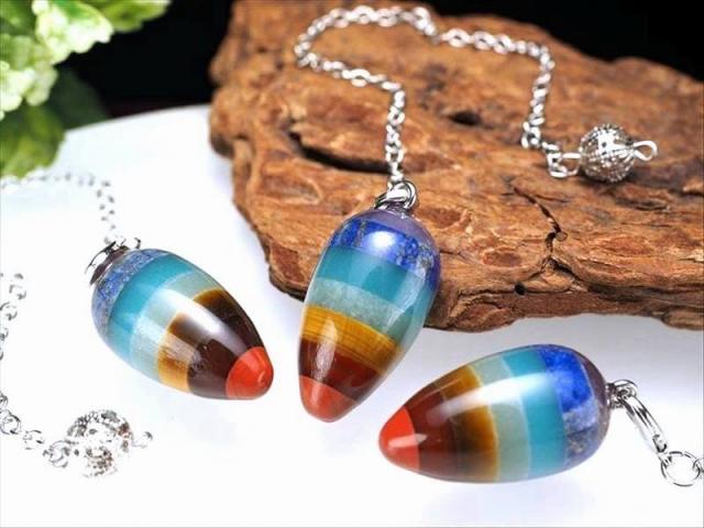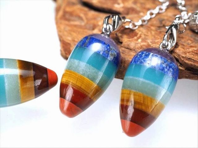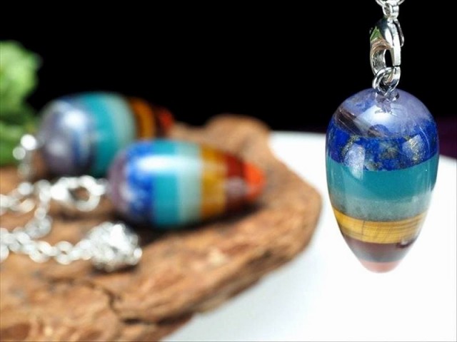 7種のチャクラストーンが付いた希少デザインのペンデュラムが入荷しました! こちらの軸は外すこともでき、ペンデュラムとしてはもちろん、ペンダントトップとしてなどもお使いいただけます!! 希少な天然石をふんだんに使用したハイグレードなペンデュラムです! 少数入荷ですのでお買い逃しなく! 【チャクラストーンの種類】 紫色 アメジスト 青紫 ラピスラズリ 水色 シーブルーカルセドニー 緑色 アベンチュリン 黄色 タイガーアイ オレンジ色 カーネリアン 赤色 レッドジャスパー |