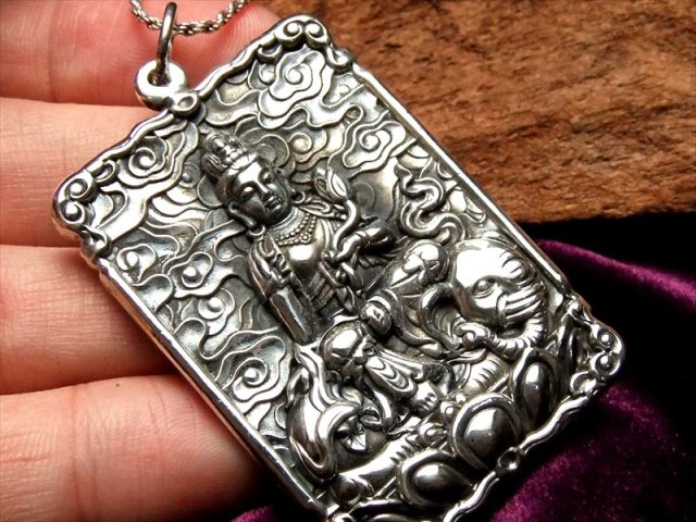 ★高品質★普賢菩薩 彫刻ペンダントトップ★ 人気の観音シリーズに高品質シルバーを使用したペンダントトップを入荷しました、お守りと持ち歩いたりキーホルダーにするのもオススメ♪ 【普賢菩薩とは】 普賢菩薩(ふげんぼさつ)は、白象に乗り釈迦の慈悲を衆生に届ける菩薩です。 文殊菩薩と共に釈迦如来の脇侍を務め、「智」の文殊、「行」の普賢と呼ばれます。 【ご利益】 懺悔すると罪が滅し寿命が延びる。 ※サイズは目安です、大きさや重さには誤差があります。 最後にあなたに幸福が訪れますように(*^_^*) |
