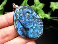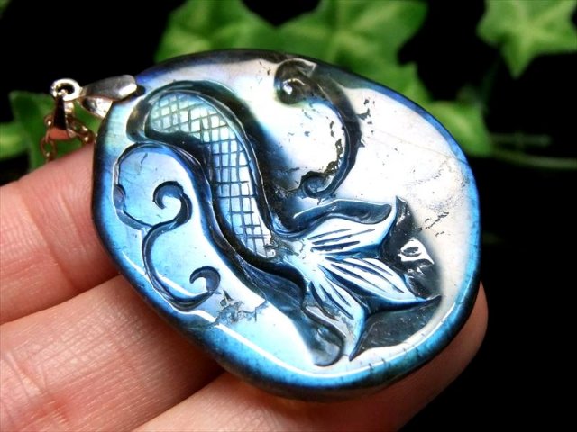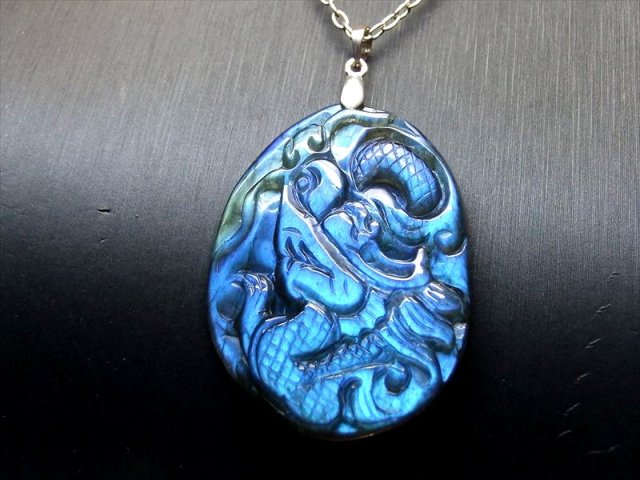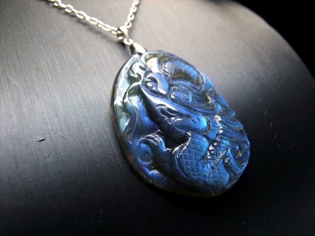 ロイヤルブルー ラブラドライト 龍神 立体彫りペンダントトップ ロイヤルブルーシラーのラブラドライト原石を使用した立体龍神彫りペンダントトップです! 裏面もデザインされており、両面共に合成写真かと疑ってしまうほど鮮やかな全面シラー! これ以上は無い、悶絶のロイヤルブルーシラーの出る極上のラブラドライト原石を、細部まで一つ一つ職人が手彫りで仕上げた、極上彫刻品です 銀河を思わせるようなシラーはついつい見入ってしまう神秘的な逸品です ストーンキーワード 内面的な自己開発へと導く。 新しい意識を開発する。 |