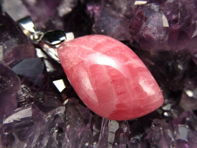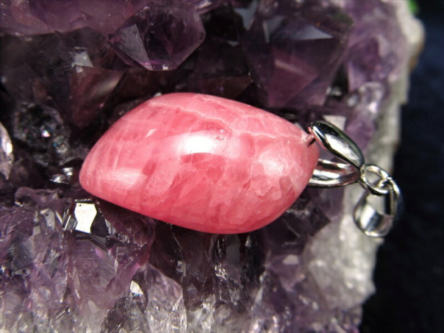 まるで薔薇の花びらを閉じ込めたような艶やかなローズピンクが魅力のインカローズペンダントトップです。 優雅な縞模様と光沢感が織り成す表情は、見る角度によって異なる美しさを放ち、身に着ける人の魅力を一層引き立てます。 1点物のため、同じ模様・色合いのものは二つとない特別感をお楽しみいただけます。 近年、品質の良いインカローズの産出が減っており、国内販売数は非常に少ない希少品です。 【意味合い・云われ・伝承等】 ・恋愛運 持ち主を豊かな愛情で包み、心に受けた傷を癒してくれると云われています。 インカローズの癒しの力は、ローズクォーツよりも強力。 別名『ロジンカ』と呼ばれるこの石は、情熱の赤い花のような色彩と『薔薇色の人生』を象徴する石として非常に高い人気を誇っています。 そして、より即効性があるといわれています。 |