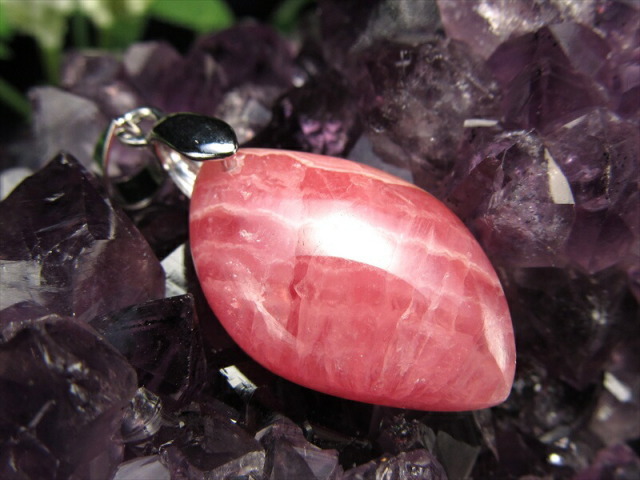 まるで薔薇の花びらを閉じ込めたような艶やかなローズピンクが魅力のインカローズペンダントトップです。 優雅な縞模様と光沢感が織り成す表情は、見る角度によって異なる美しさを放ち、身に着ける人の魅力を一層引き立てます。 1点物のため、同じ模様・色合いのものは二つとない特別感をお楽しみいただけます。 近年、品質の良いインカローズの産出が減っており、国内販売数は非常に少ない希少品です。 【意味合い・云われ・伝承等】 ・恋愛運 持ち主を豊かな愛情で包み、心に受けた傷を癒してくれると云われています。 インカローズの癒しの力は、ローズクォーツよりも強力。 別名『ロジンカ』と呼ばれるこの石は、情熱の赤い花のような色彩と『薔薇色の人生』を象徴する石として非常に高い人気を誇っています。 そして、より即効性があるといわれています。 |