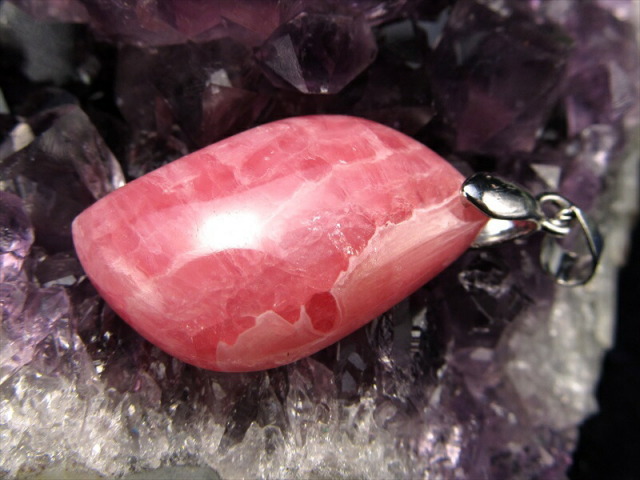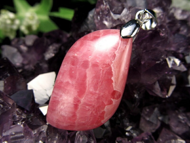 まるで薔薇の花びらを閉じ込めたような艶やかなローズピンクが魅力のインカローズペンダントトップです。 優雅な縞模様と光沢感が織り成す表情は、見る角度によって異なる美しさを放ち、身に着ける人の魅力を一層引き立てます。 1点物のため、同じ模様・色合いのものは二つとない特別感をお楽しみいただけます。 近年、品質の良いインカローズの産出が減っており、国内販売数は非常に少ない希少品です。 【意味合い・云われ・伝承等】 ・恋愛運 持ち主を豊かな愛情で包み、心に受けた傷を癒してくれると云われています。 インカローズの癒しの力は、ローズクォーツよりも強力。 別名『ロジンカ』と呼ばれるこの石は、情熱の赤い花のような色彩と『薔薇色の人生』を象徴する石として非常に高い人気を誇っています。 そして、より即効性があるといわれています。 |