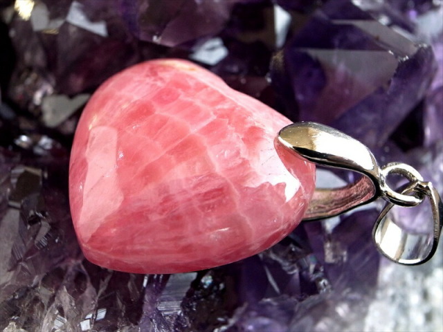 まるで薔薇の花びらを閉じ込めたような艶やかなローズピンクが魅力のインカローズペンダントトップです。 優雅な縞模様と光沢感が織り成す表情は、見る角度によって異なる美しさを放ち、身に着ける人の魅力を一層引き立てます。 1点物のため、同じ模様・色合いのものは二つとない特別感をお楽しみいただけます。 近年、品質の良いインカローズの産出が減っており、国内販売数は非常に少ない希少品です。 【意味合い・云われ・伝承等】 ・恋愛運 持ち主を豊かな愛情で包み、心に受けた傷を癒してくれると云われています。 インカローズの癒しの力は、ローズクォーツよりも強力。 別名『ロジンカ』と呼ばれるこの石は、情熱の赤い花のような色彩と『薔薇色の人生』を象徴する石として非常に高い人気を誇っています。 そして、より即効性があるといわれています。 |