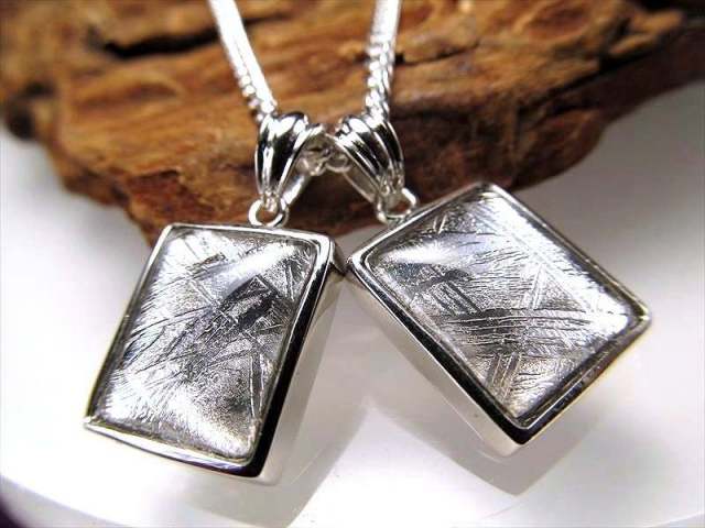 鉄隕石であるギベオンメテオライトペンダント入荷です!! 神秘的なウィドマンシュテッテン構造と言われる網目模様は、鉄とニッケルが非常に長い時間をかけて ゆっくりと冷えて固まることから生まれるものと言われます。 これは地球上では再現することが不可能と言われ、成分的にも地球上には存在しない物質が、超微量ですが、含まれていると言われます。 こちらはシンプルなスクエアカット型のペンダントの中心にギベオンが大きく浮出しており、神秘的な模様がアクセントになります! デザイン性の高いオシャレなペンダントトップですので、どんなファッションにも映えること間違いなしです! 隕石好きにはもちろんですが、デザイン重視の方にも大変オススメの商品です! 限定入荷ですので是非! |