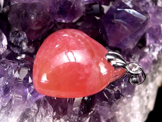 まるで薔薇の花びらを閉じ込めたような艶やかなローズピンクが魅力のインカローズペンダントトップです。 優雅な縞模様と光沢感が織り成す表情は、見る角度によって異なる美しさを放ち、身に着ける人の魅力を一層引き立てます。 1点物のため、同じ模様・色合いのものは二つとない特別感をお楽しみいただけます。 近年、品質の良いインカローズの産出が減っており、国内販売数は非常に少ない希少品です。 【意味合い・云われ・伝承等】 ・恋愛運 持ち主を豊かな愛情で包み、心に受けた傷を癒してくれると云われています。 インカローズの癒しの力は、ローズクォーツよりも強力。 別名『ロジンカ』と呼ばれるこの石は、情熱の赤い花のような色彩と『薔薇色の人生』を象徴する石として非常に高い人気を誇っています。 そして、より即効性があるといわれています。 |