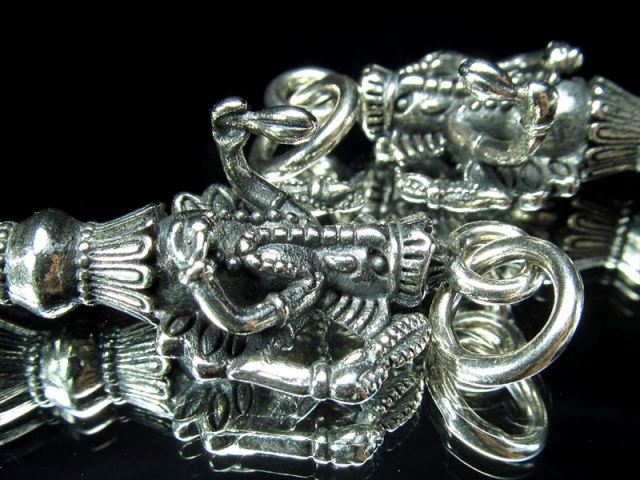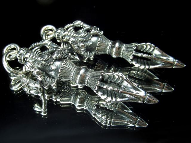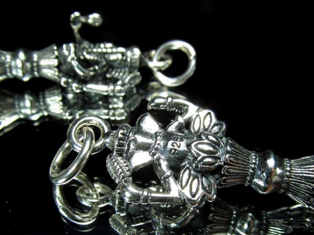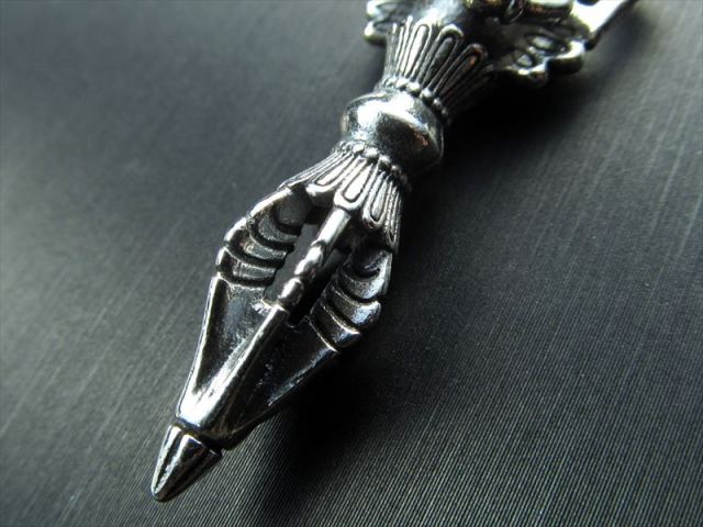 ガネーシャ彫り シルバーペンダントトップ 障害を取り去り、また財産をもたらすと言われるガネーシャ彫りのシルバーペンダントトップが入荷致しました! 【夢を叶える象!商業の神・学問の神ガネーシャ】 太鼓腹の人間の身体に 片方の牙の折れた象の頭をもった神で、4本の腕をもつ。障害を取り去り、また財産をもたらすと言われ、商業の神・学問の神とされています。 その特徴的な風貌から日本でも夢を叶える象といわれ人気がある神様です。 【プルパ(金剛杭)】 プルパとは密教で使われる法具の一つです。 ネガティブなエネルギーや邪気などを入り込ませないようにする仏の持つ刀です。 一般的に和名では金剛杭(こんごうくい)と言われますが、正確には金剛けつ(こんごうけつ)と称します。 厄除け、邪気を払うお守りとして是非! 少量限定入荷です! お買い逃しなく!! ※サイズは目安です。 細かな誤差が出る場合があります。 ※トップのみの販売のため、撮影に使用しているチェーンは付属されません。 ※海外輸入品のため、ロットによって彫刻に違いが生じる場合がございます。 最後にあなたに幸福が訪れますように(*^_^*) |