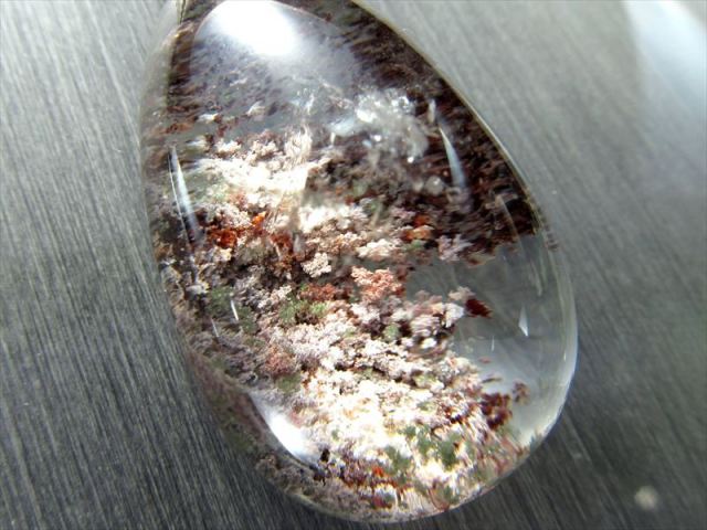 水晶の中に広がる神秘的な小宇宙、ガーデンクォーツ。 苔や鉱物が織りなす情景は、まるで龍神の棲むような庭園が広がっており、迫力満点です。 透明感のある水晶に赤と緑のガーデンがしっかり入っており、眺める角度によって表情が異なり、世界に一つだけの風景を見せてくれます。 自然の癒やしと龍神のパワーが、あなたを力強くサポートします。 お守りとして、また個性的なアクセサリーとして、この機会に是非どうぞ。 【意味合い云われ・伝承等】 長寿・健康・繁栄をつかさどる。 土地と繋がる力を強める。 ヒーリング効果。 |