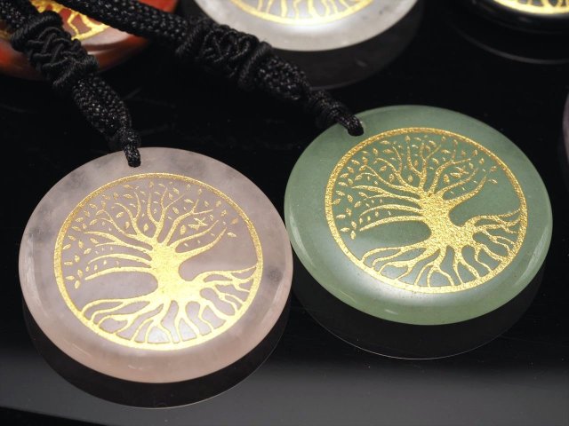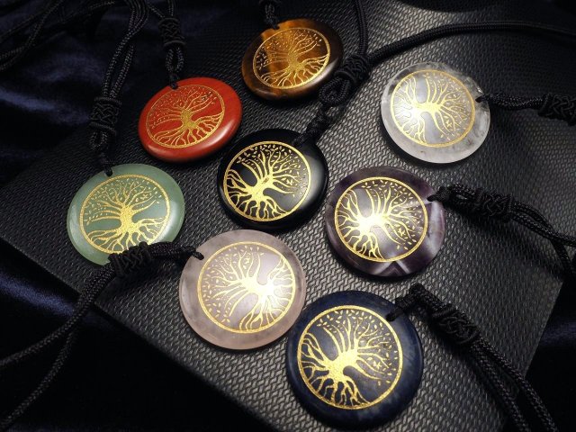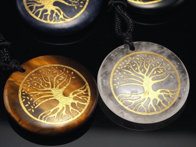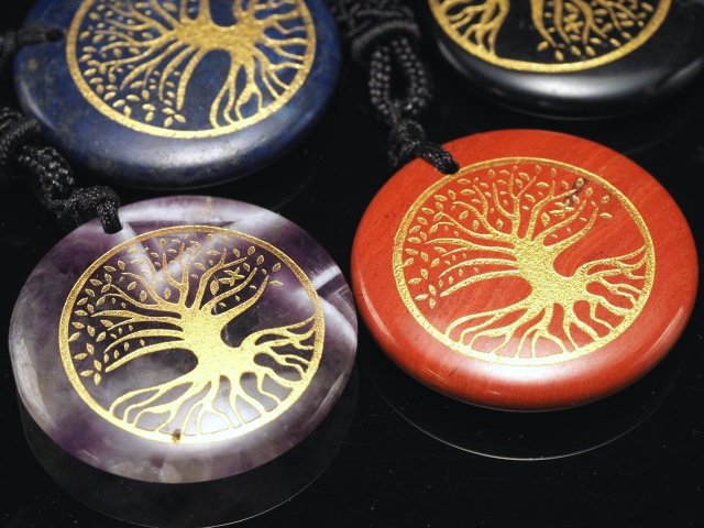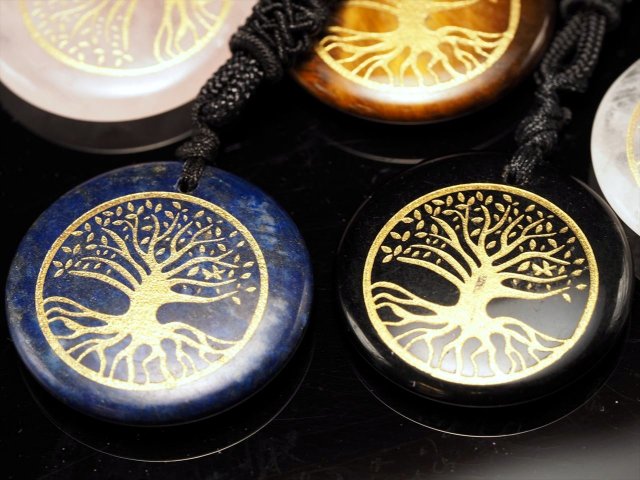 大人気モチーフネックレスが入荷しました!! 滑らかに磨かれた定番ストーンに、ツリーオブライフの金塗り彫刻が施されています! 世界樹は、世界の中心に生えており世界の全体を体現するという巨木を世界樹といわれています。 大きめサイズなので存在感があり、ツリーオブライフの模様も映えます! |