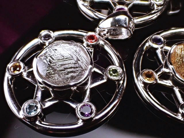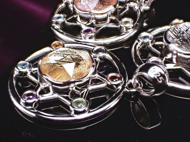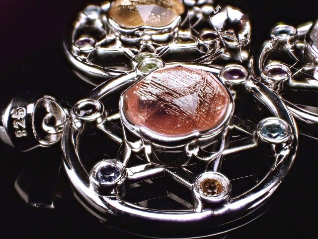 鉄隕石であるギベオンメテオライトペンダント入荷です!! 神秘的なウィドマンシュテッテン構造と言われる網目模様は、鉄とニッケルが非常に長い時間をかけて ゆっくりと冷えて固まることから生まれるものと言われます。 これは地球上では再現することが不可能と言われ、成分的にも地球上には存在しない物質が、超微量ですが、含まれていると言われます。 【ギベオンとは】 ギベオンは、4億5千万年前に地球に飛来したといわれていますが、ギベオン隕石として発見されたのはヨーロッパ人によって「1836年」にナミビアで発見されたといわれています。 宇宙からやってきた鉱物の中でも最も有名なメテオライト。 六芒星 六芒星は古代より魔除けとして使われました。 シュメル文明やバビロニアなどの古代オリエントで使われていました。人類の文明と同じくらい歴史のある魔除けです。 六芒星は五芒星と同様に一筆書きができます。線に切れ目がないので悪霊を結界のなかに閉じ込めたり、逆に結界のなかに悪霊が入らないようにできると云われています。 【天然石の種類】 赤色 : ガーネット 青色 : アイオライト 薄青色: ブルートパーズ 緑色 : グリーンアメジスト 黄色 : シトリン 紫色 : アメジスト |