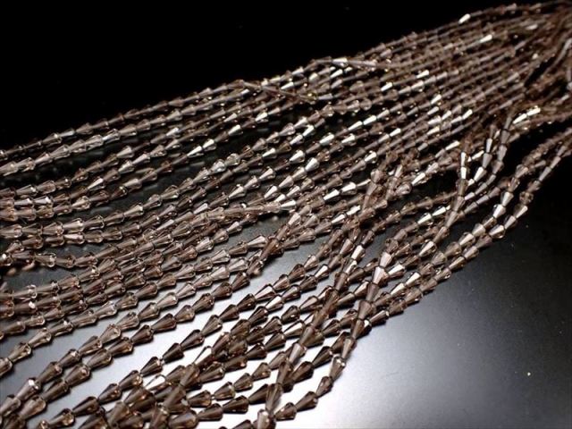 パワーストーンの中でも定番のスモーキークォーツ! 透明感があり、落ち着きあるブラウンカラーの天然石です。 水晶中の微量なアルミニウムと熱や照射が発色源となり、このような深みのある色になります。 小粒ですので、ネックレスやピアス、ワイヤーブレスレットなどの材料にオススメです! 【意味合い云われ・伝承等】 スモーキークォーツは、水晶グループの中で最も身体と大地とのエネルギーを繋げる力に適した石です。 心身を安定させ、持ち主の精神を安定した方向へ導き、恐怖や不安を解消するのに役立ちます。 他人の悪想念や、霊的、環境的マイナスエネルギーから持ち主を守る石で、邪気払いのお守りとしてもオススメ です。 |