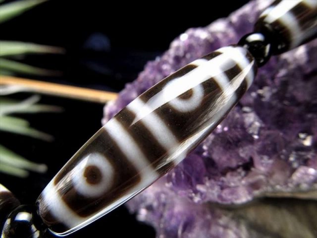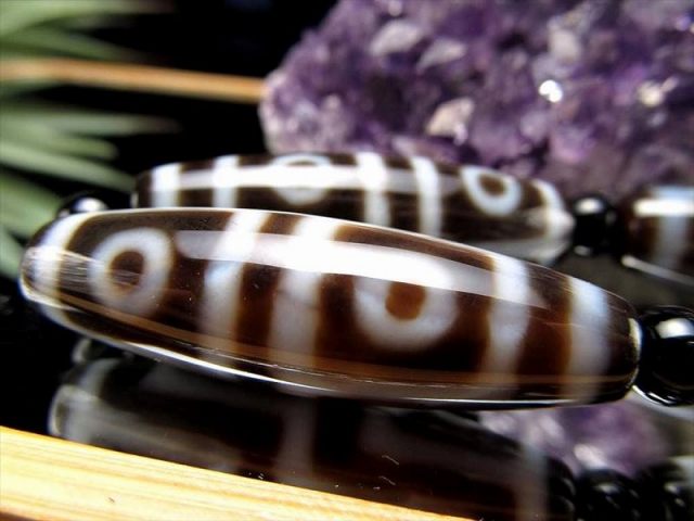 お買い得な連販売の天珠です! 一連に5個の天珠がついています。 また天珠の間に6mm珠のオニキスが挟んであり、こちらも勿論お使い頂けますよ! 限定入荷ですのでお早めにどうぞ! 【意味合い云われ・伝承等】 四眼天珠は、観音菩薩、文殊菩薩、地蔵菩薩、普賢菩薩の「四大菩薩」を象徴します。 四方八方からの強力な守りと、安心立命、知恵が沸き、尊い知恵を授け自分の望んだ道で成功するように導くと云われています。 |