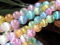 シルクのような繊維質をもつキャッツアイセレナイト【透石膏】です。 癒しの石としてヒーラーの方などの間でよく用いられる石です。 こちらは、カラー染色とオーラ加工が施された天然ジプサムは、可憐さと幻想的な輝きをあわせ持つ仕上がりになっています。 高温蒸着による「オーラ加工」により、まるでオーロラのような煌めきを放ち、見る角度によって異なる表情を見せてくれます。 さらに、天然染色で丁寧に彩られたカラーが、鮮やかに彩ります。 セレナイト特有の若干のかさつきはあるものの、透明感もあり、美しいキャッツアイ効果も抜群です! ブレスレットの作成だけでなく、ネックレスやピアスなどにもオススメですよ! 石膏の一種で、その中で無色透明なものがセレナイトと呼ばれます。 別名「聖母マリアのガラス」とも呼ばれ、かつては実際に窓ガラスなどに利用されることもあったそうです。 セレナイトとサティンスパーは、どちらもジプサム(石膏)の一種で、無色透明な物をセレナイト、白色で繊維質の物をサティンスパーといいます。 【意味合い・云われ・伝承等】 ◇清廉潔白の石◇ セレナイトは清廉潔白で、高い波動を秘めており、自他の荒ぶるエネルギーを鎮静化するなどにも強力な効果を発揮すると云われています。 |