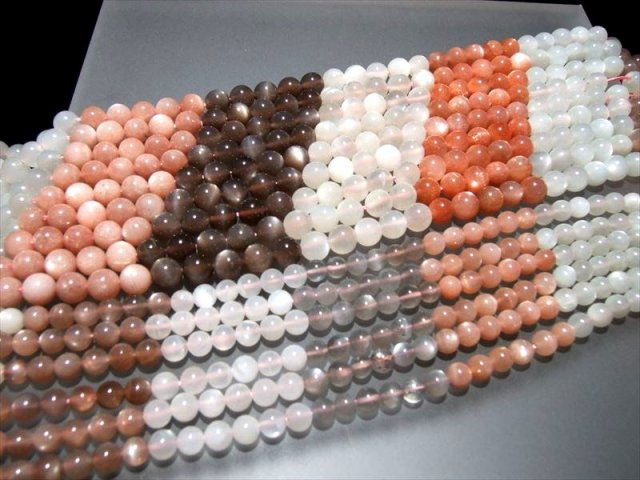 サンストーンとムーンストーンの便利なミックスバージョンの入荷です! キラキラとしたアベンチュレッセンスや、ムーンストーンのシラーが美しく、華やかさもあります! 激安価格ですので是非!! 【意味合い云われ・伝承等】 サンストーンは『太陽の石』と呼ばれ、自信の無い人やコンプレックスの強い人に対して冷えた心を太陽の光が温めてくれるように、自信を取り戻すために働くと云われています。 また、心に余裕をつくり、さらに人生に対する創造性を高め、前向きに人生を楽しむ事を教えてくれるとも云われています。 ムーンストーンは『月の石』とも呼ばれ、女性らしさを高め、恋の成就にも効果的。 |