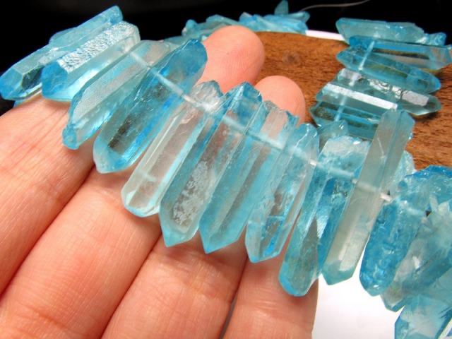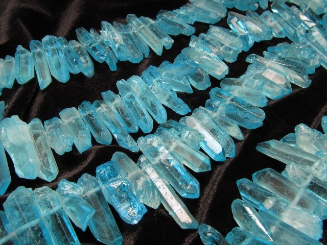 ライトブルー染色 ナチュラルポイント 迫力満点!ナチュラルポイント水晶連です! ナチュラルなポイントを使用しているため、1本の連の中でも太さや大きさ、形状まで様々です!! ピアスやネックレス、ストラップなど、アクセサリーデザインにオススメ!! ポイントの根元に穴があいているので、ワイヤーラップ加工にも最適です♪ 水晶は世界中の人に愛され、伝統的に使われてきた、パワーストーンを語る上で欠かせない石です。 クセが少なく、持つ人や組み合わせる石を選ばないので、パワーストーン初心者の方にも扱いやすい石です! 天然石は水晶で始まり水晶で終わると言われているほど、定番中の定番天然石です。 【意味合い云われ・伝承等】 全てを清め浄化する 魔除け・厄除け 開運 潜在的な能力やパワーを高める |