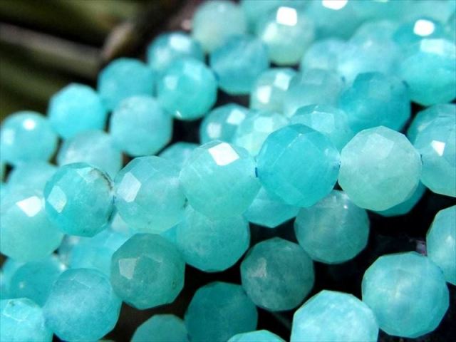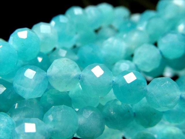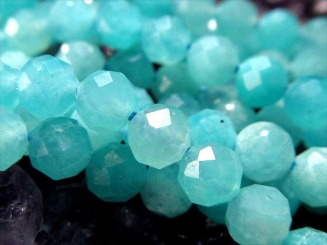 小粒サイズの多面カットが施された、天然石ビーズの一連販売です。 光を受けるたびに細やかに反射し、キラキラとした上品な輝きをお楽しみいただけます。 ネックレスやブレスレットはもちろん、ピアスやチャームなど、幅広いハンドメイド作品に取り入れやすい万能サイズ。 同形状で様々な天然石があるため、色違いや石違いで揃えるのもオススメです。 【意味合い・云われ・伝承等】 アマゾナイトは別名「希望の石:ホープストーン」 と呼ばれています。 主に精神面に強く働きかけ、心身のバランスを前向きで安定した状態に整えて、夢や目標を叶えていく為に必要な積極性を養うサポートをしてくれると云われています。 |