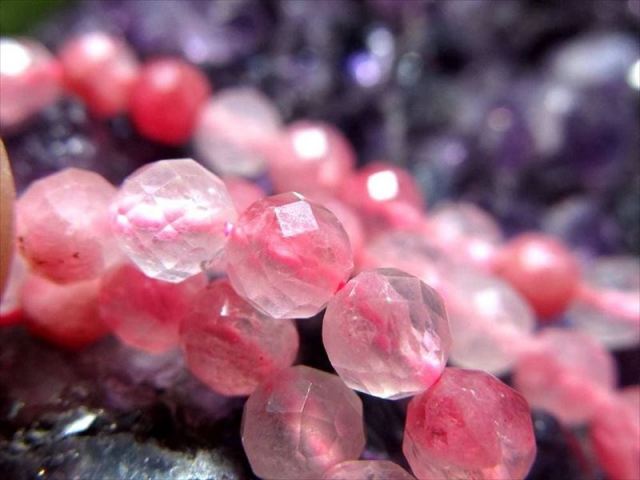 小粒サイズの多面カットが施された、天然石ビーズの一連販売です。 光を受けるたびに細やかに反射し、キラキラとした上品な輝きをお楽しみいただけます。 ネックレスやブレスレットはもちろん、ピアスやチャームなど、幅広いハンドメイド作品に取り入れやすい万能サイズ。 同形状で様々な天然石があるため、色違いや石違いで揃えるのもオススメです。 【意味合い・云われ・伝承等】 ロードナイトは優しい愛のエネルギーを持つといわれ、友愛や家族愛の象徴とされています。 また、ストレスや疲労を緩和する力があるとされ、日常のお守りとしてもおすすめです。 |