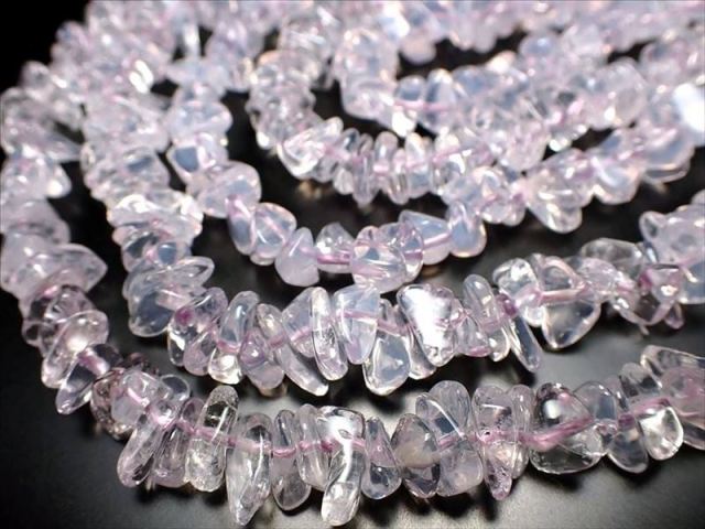 ムーンライトアメジスト(スコロライト) ムーンライトアメジストは別名をスコロライトといい、その独自の柔らかな色みから女性に大変人気のある石です。 特殊な方法でアメジストに熱を加えると、この美しいピンクパープルになります。 近年、急激に人気度が上がっている新しいタイプのアメジストです。 丸珠ブレスレットがよく流通しているムーンライトアメジストですが、こちらは珍しいさざれ状のビーズです。 丸珠では高価なムーンライトアメジストですが、不揃いのさざれ連ならではのお手頃価格もオススメのポイントです。 【意味合い云われ・伝承等】 自分らしさ 純愛 素直 |
