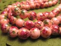 トンボ玉 (ホタルガラス) 陶器製のビーズに、花が描かれている昔ながらの人工ビーズが入荷致しました! 青やピンク、緑で様々な可愛らしい花が描かれたトンボ玉です! 夏にぴったりの色合いのものや、和を感じさせるデザインのものなど可愛いものいっぱいです♪ デザインブレスなどのアクセントに是非!! 一味違ったブレスになりますよ♪ 【意味合い云われ・伝承等】 とんぼ玉は柄が入ったガラス玉で、その模様がトンボの複眼に見えたことから「とんぼ玉」と呼ばれたと云われています。 江戸時代には青地に白花模様のガラス玉を蜻蛉玉、それ以外のものは模様に応じてスジ玉や雁木玉などと呼び分けていたようです。 現在では模様に関係なく「とんぼ玉」と呼ばれており、様々な技法も生まれ、多種のとんぼ玉が生まれています。 |