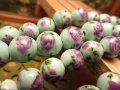 トンボ玉 (ホタルガラス) 陶器製のビーズに、花が描かれている昔ながらの人工ビーズが入荷致しました! 青やピンク、緑で様々な可愛らしい花が描かれたトンボ玉です! 夏にぴったりの色合いのものや、和を感じさせるデザインのものなど可愛いものいっぱいです♪ デザインブレスなどのアクセントに是非!! 一味違ったブレスになりますよ♪ 【意味合い云われ・伝承等】 とんぼ玉は柄が入ったガラス玉で、その模様がトンボの複眼に見えたことから「とんぼ玉」と呼ばれたと云われています。 江戸時代には青地に白花模様のガラス玉を蜻蛉玉、それ以外のものは模様に応じてスジ玉や雁木玉などと呼び分けていたようです。 現在では模様に関係なく「とんぼ玉」と呼ばれており、様々な技法も生まれ、多種のとんぼ玉が生まれています。 |