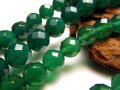 グリーンアゲート カット 濃いめの発色が美しいグリーンアゲート連です! こちらは浸透させるタイプの染色で美しく染めてあります。 表面の研磨も綺麗で艶々と光沢があります! 濃い緑色で透明感のあるビーズ石は少ないため、オリジナル商品作製にもってこいです! 【意味合い云われ・伝承等】 気持ちを安らげる 落ち着きを与える |