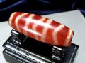 水紋天珠紅朱砂龍紋天珠 ※今回入荷は、木のプレートに乗った3本が現品です。画像以外の商品を送ることはありません。 【水紋天珠とは】 水の波紋のように幸運が次々と訪れ、泉のように財運・金運が溢れ出ると云われています。 また悪運はきれいに浄化され、不運は消滅すると云われています。 【朱砂とは】 朱砂というのは、赤い斑点のことを言います。 朱砂は天珠の表面にだけあるのではなく、内部から外部まで自然に分布しています。 また、朱砂は赤色だけではなく、黒い斑点であることもあります。 身に付けているうちに、ゆっくりと黒から赤へ淡泊化する例も確認されており、チベット仏教の僧侶が身につけている天珠では、僧侶の修行に伴い朱砂が現れるという言い伝えもあるそうです。 【龍紋天珠とは】 天珠の表面に龍の鱗(うろこ)のような紋様が浮き出てくることがあり、よりご利益があると言われている天珠です。 この鱗紋様はクラックではないので、表面はつるつるの滑らかな状態です。 滅多にお目にかからない、激レアな天珠! この機会に是非! |